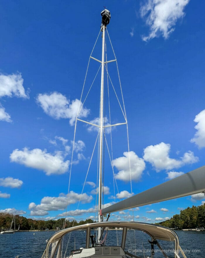 One other point, if you ever have to go up at sea, never mind the weather, passing a line around the mast won’t work because you will definitely want the mainsail up. More on that, and why ascenders are not the best idea at sea in Part 4.