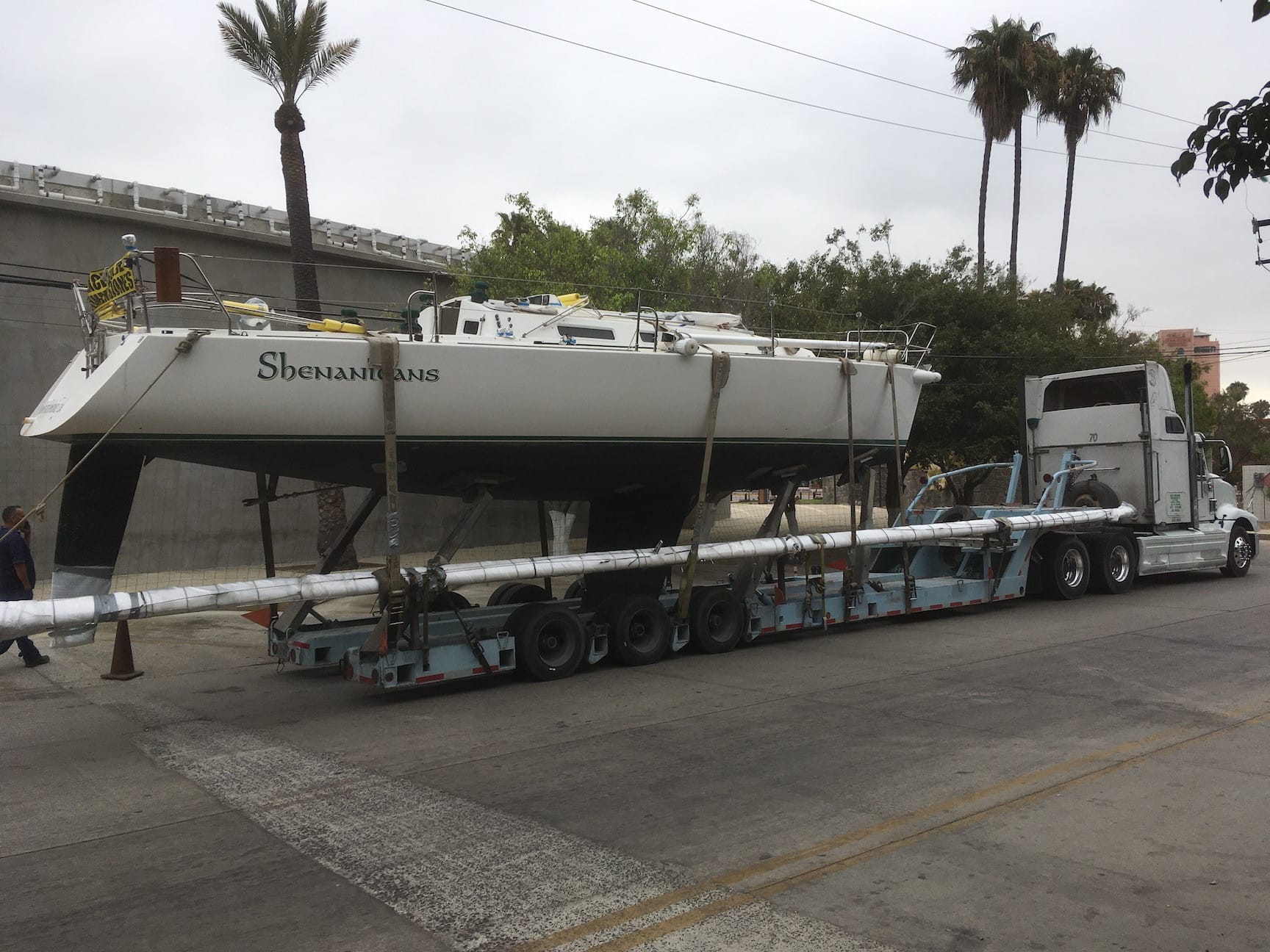 We had our J/120 trucked from San Carlos to Ensenada by the same folks mentioned by two others, and I agree that they were excellent. Despite my nervousness, everything went smoothly, and the the boat was delivered perfectly. My advice: 1) Check to see if there is a Shipping Guide from the builder. J Boats had one for the J/120 that showed every critical dimension. It will tell you exactly what you have to remove, and what you don’t; 2) Protect your rudder with cardboard or heavy shrink wrap. It will be very exposed and susceptible to damage from chips and rocks; 3) Make sure you know payment terms. Although the price didn’t change, I had to make full payment upon delivery, which I wasn’t told in advance. Fortunately they took a credit card with no additional fees, but there were some harsh words exchanged at the end; 4) Be present and involved at every step. This is a non-negotiable. The only thing I wasn’t able to do was follow behind the truck since I had no car in Mexico; 5) Lastly, we went to Ensenada rather than San Diego to avoid a mid-journey transfer, which seemed perilous. From Ensenada it’s an easy day’s sail to San Diego. Overall, the experience was a lot of work and a lot of stress, and I hope to never have to do it again. But everything turned out fine and we had the opportunity to get some good work done at the boatyard in Ensenada.