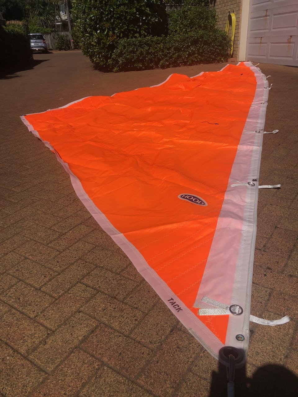 This pic is of our Hood storm jib that came with the boat, where you can see the new soft hanks.