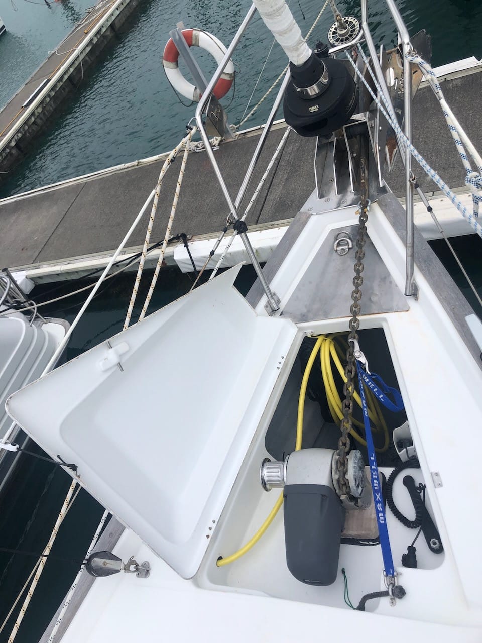 Given our removable inner forestay, and the storm jib are only rigged for offshore passages, and with 90% of our sailing being around the NZ coast, having a full-noise stay attachment in the middle of our foredeck, as a trip hazard to catch my feet on, wouldn’t be just a PITA…!