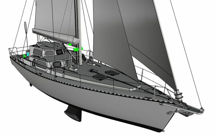 I don’t see any obvious routings for the port and starboard preventers? Same goes for the headsail furling lines. On many boats, these seem grafted-on and end up as trip hazards. It’d be nice to see them fully considered in the design.