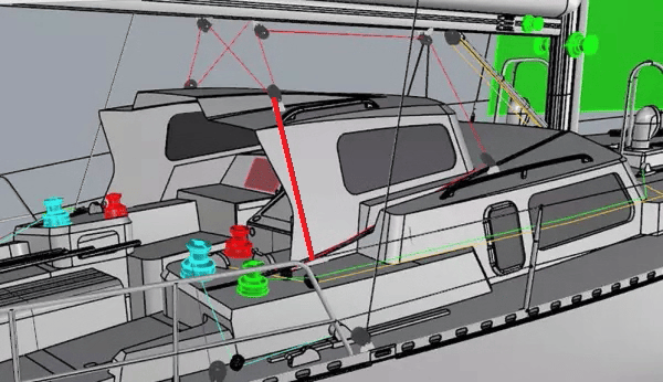 I’d like to underline that the apparent complexification comes from having done more work on how to lead the lines, and comes with better ergonomics at the winch stations. Also, when we’ll turn to the cockpit, you should see that we’ve simplified some other volumes.