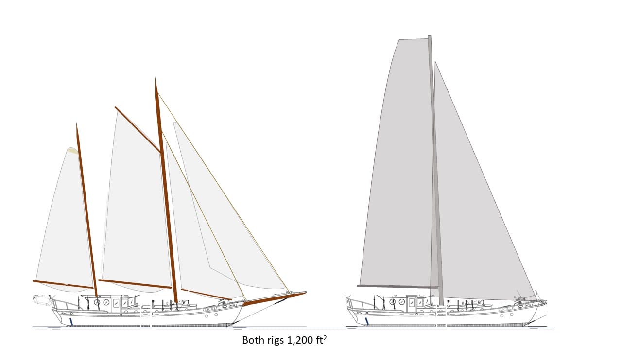 I wondered how the pitch moments might compare between a ketch-cutter & a sloop with the same sail areas. Looks pretty close.