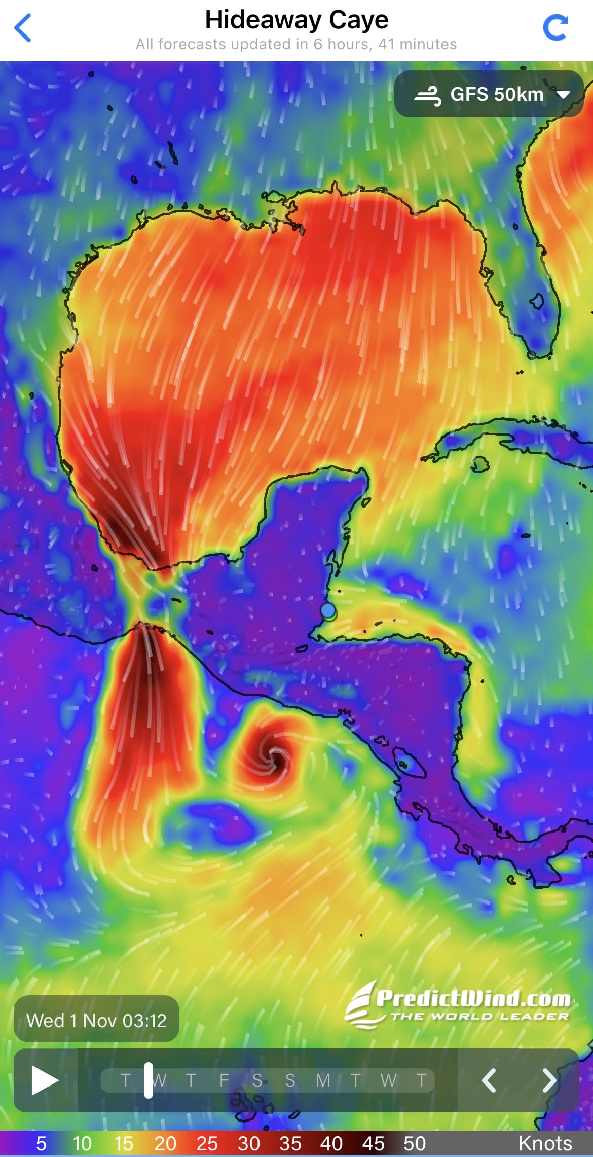 The probabilistic wind speed guidance is great, thanks for alerting me to that. I have long wanted some form of a tolerance band on the prediction and while this isn’t exactly that, it gets at what I was hoping for. Looks like I need to dig in a bit better and understand how it works so that I can understand whether it still has the same shortcomings on things like fronts. I have long felt that we need to view weather with a bit more of a statistics mindset. We have had a few times recently where a storm has come through while we are at anchor and we can watch a band hit us on the weather radar which has windspeeds 50%+ higher than anywhere else and if we had been 10 or 20 miles away, we would not have had them. This is a great example where the forecast won’t capture that level of granularity but suddenly you have 50 steady across the deck instead of that 30 you had been having but most people in the storm never see that higher amount either.