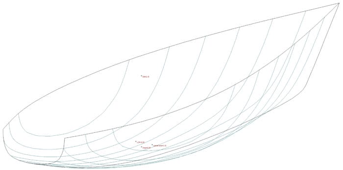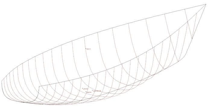 When we lay all of those out flat, we get the lines plan: a clean, intuitive way to accurately represent the shape of the hull.
