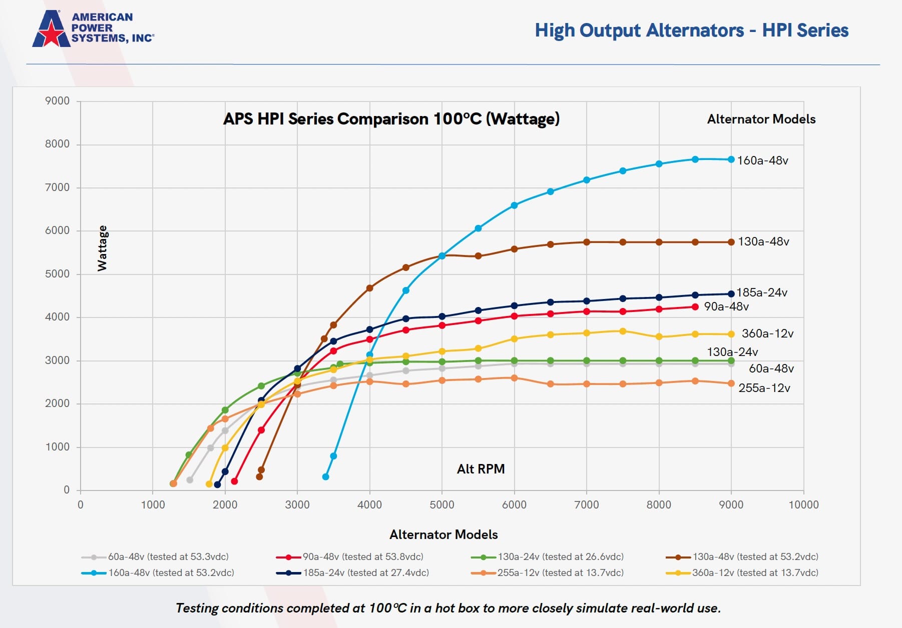 Here is the American Power Systems output chart for their HPI series at 12, 24, & 48v. Balmar also makes 48v alternators. You can see how engine run time would drop and generators could be obviated.