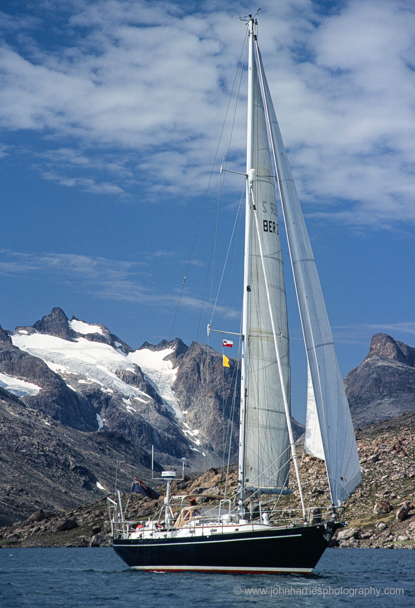 I’m reading this post from my hotel in Reykjavik, having just finished a coastal cruise of south Greenland and then a crossing of the Denmark Strait. I had the pleasure of sailing for the second time on Valiente, Seil Norge’s 70’ steel cutter. There are many many unforgiving aspects to her, including 40 ton displacement, enormous sails, in-boom furling, lack of a properly rigged preventer and plus a big RIB and storage boxes on the foredeck. Her bow thruster and windlass are hydraulic, and then engine needs to be in neutral to send full power to the hydraulic pump. She has a lot of prop walk in reverse. On the plus side she has high rails and a protected cockpit.