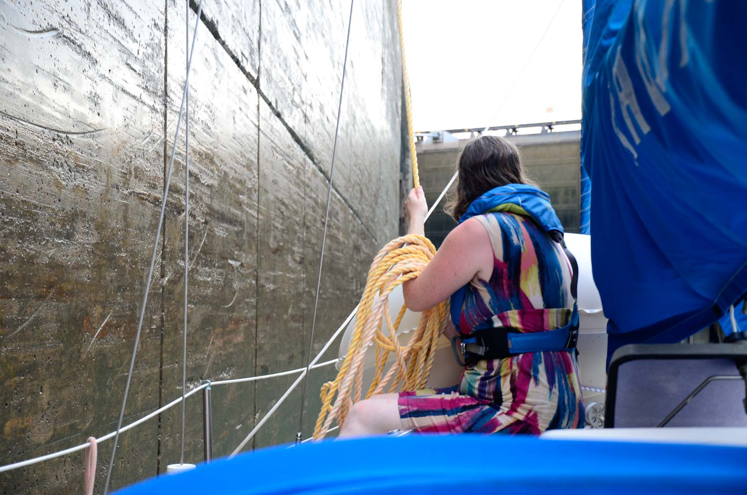 Despite dire warnings of “holes the size of Volkswagens in the lock walls” and “inch-thick rebar sticking out everywhere”, we find our fender board to be nearly unscuffed. Sailor gossip does, indeed, become somewhat exaggerated over the course of two or three days.