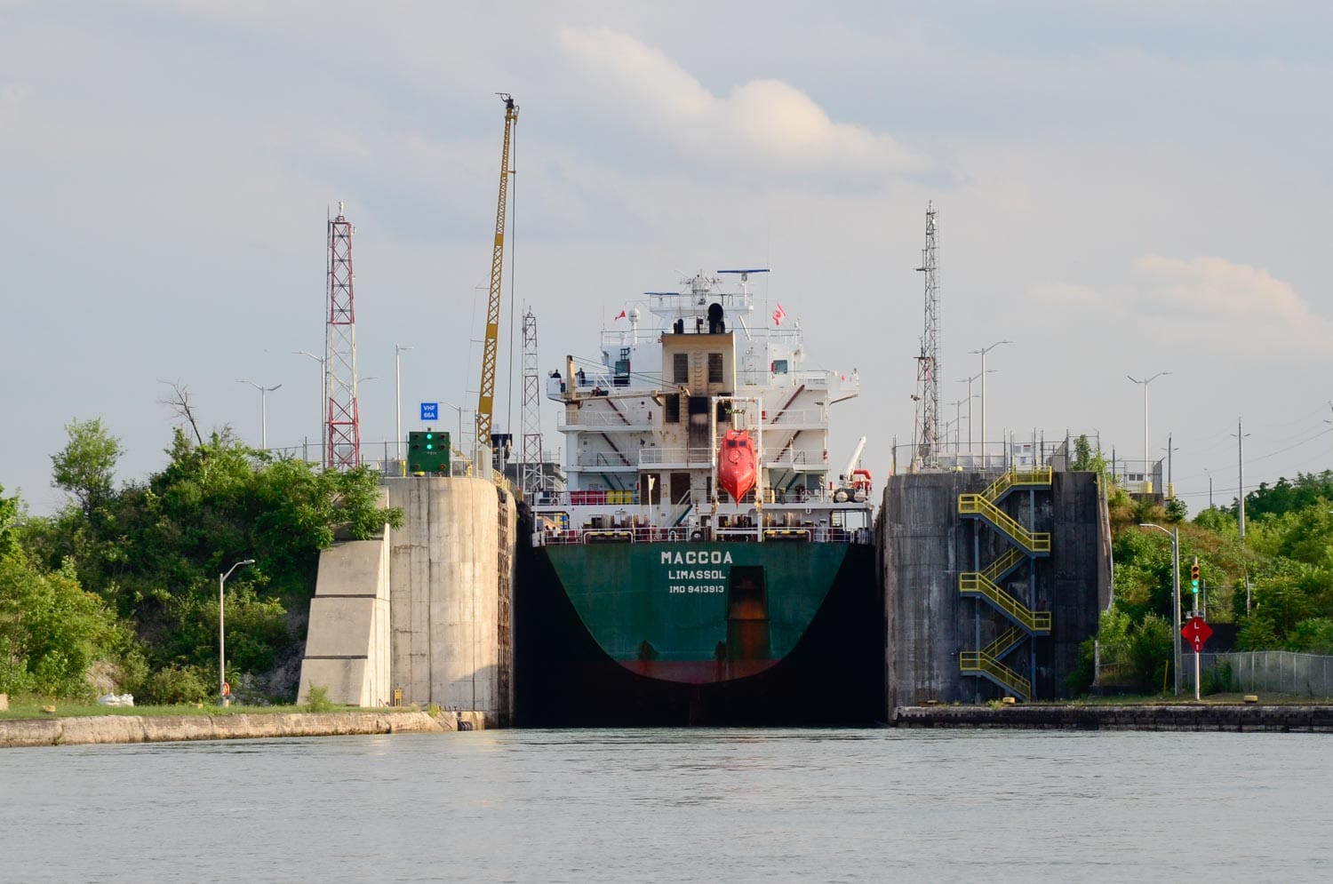 The bridge goes up, and we carry on. While the Seaway is now heavily automated via a central command office, I can’t help but double-check that the bridge is indeed up and locked. Back in 2001, a bridge attendant, badly hungover from the previous night’s antics, lowered this exact bridge on top of the MS Windoc, somehow without killing anyone in the process.