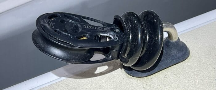Our J/109, in common with most boats with spinnakers, has turning blocks for the sheets that must reorient to loads from different directions, depending on the point of sail, and therefore uses loose blocks on pad eyes.
