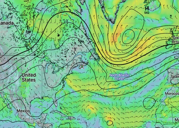 But if we are trying to make a passage under sail in the mid-latitudes, we will hate a blocker for its light winds. And if we are to the west of one in the northern mid-latitudes, it’s likely we will hate the stationary low pressure over us that’s blocked from moving away.