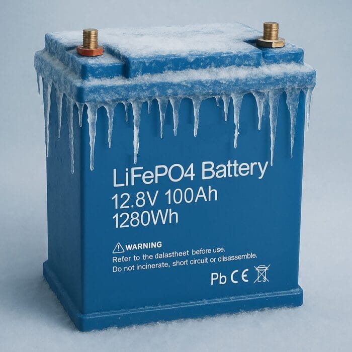 LFP cells can be charged at any temperature, also far below freezing, but the colder it gets, the lower the charging speed (Amps) must be, if we don’t want damage. When below freezing, the safe charging speed is so minimal that it is mostly useless. It can’t keep up with any real life consumption. Discharge isn’t limited by cold.