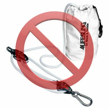 - On a sailboat, don’t mess with those block and tackles that are often sold with a LifeSling, use a halyard.