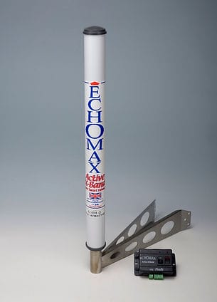 The Echomax has been around a long time, although the upgrade to both S & X bands seems newer. I cannot find any objective test data (akin to the data on passive reflectors) but I assume there must be something out there. I did learn in a quick search that these devices are not triggered by the low powered signals from recreational broadband units until as little as 1.5 nm away. Better than nothing.