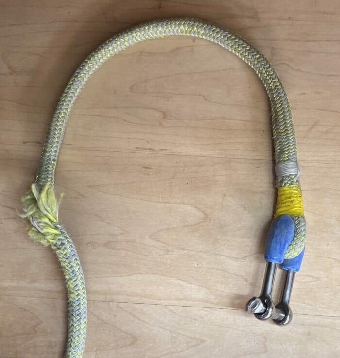 After just three day sails our main halyard is mangled. Turns out @sparcraft jammed the wiring conduit right up under the sheave on our brand new mast so it deflects the halyard and chafes it. Looked like end of season. We were gutted. No way to fix without unstep, but see next tip.