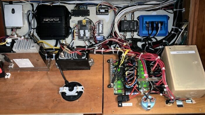 Cleaning up gave me space to move the AIS that some lazy tech had installed in the head to where it belongs, and to install a boat monitoring gadget (far left)—more on that coming in an article.