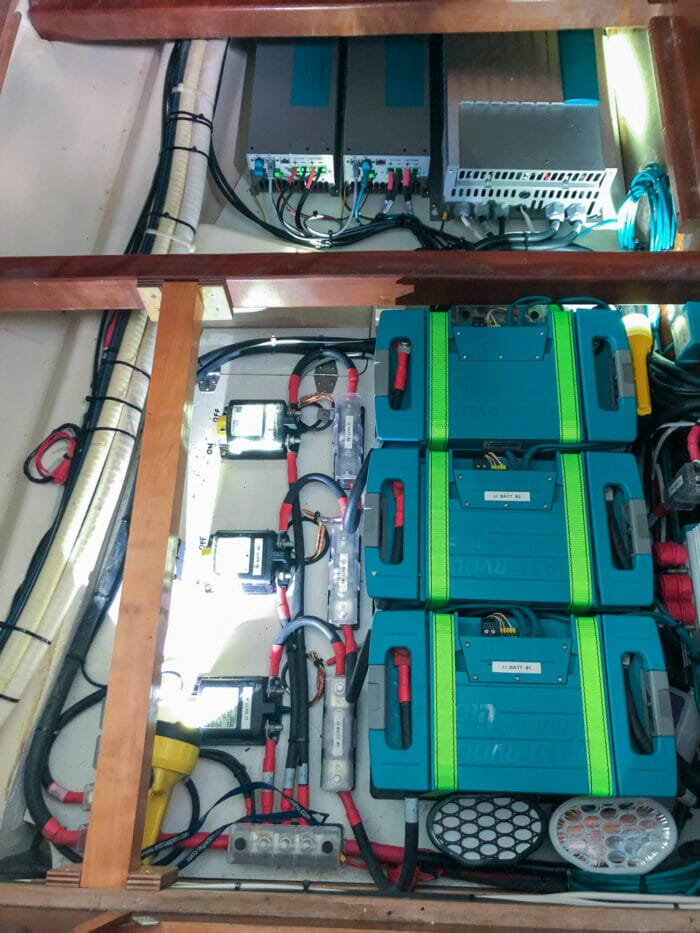 Prior to that change, as is so often the case with productions boats, the batteries were in much less functional positions, too low in the bilge and subject to engine heat.