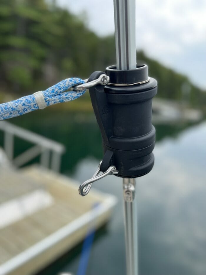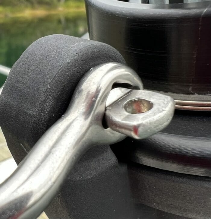 We had the jib off, so I just replaced all the standard Harken shackles our new furler came with with Wichard self-locking ones.
