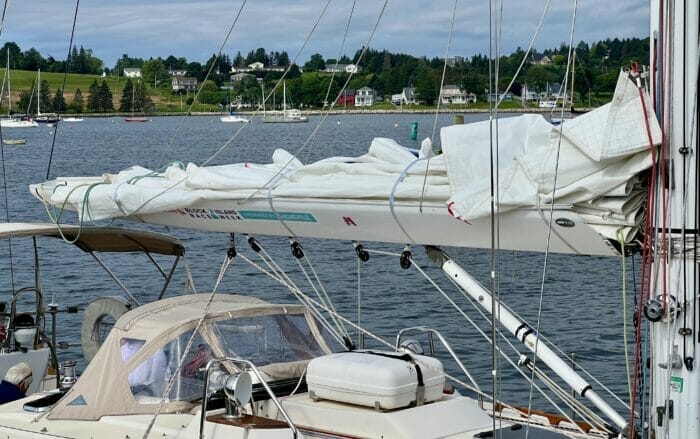 A great way to simplify sail handling, and make it easy to put on the sail cover, but without the complexity, weight, performance loss, and, yes, dangers of in-mast or in-boom furling systems, and way cheaper, too.