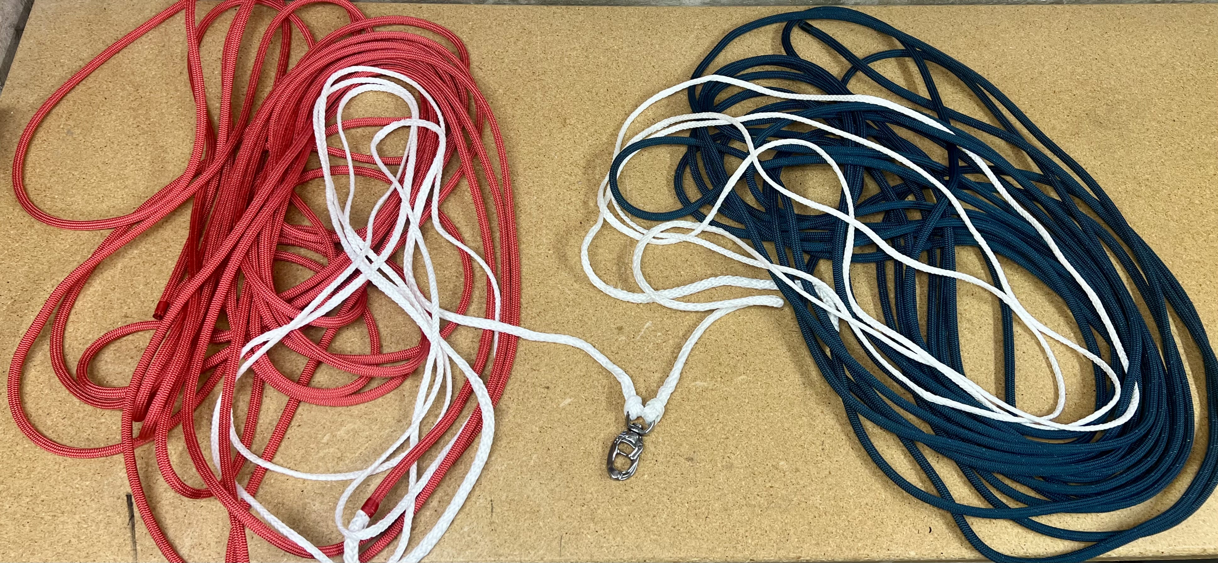 I was cleaning up the dog’s breakfast of frayed and knotted lines making up our jib in-haulers when I came up against the problem of how to attach the Amsteel™ line to the low-friction ring the sheet passes though.