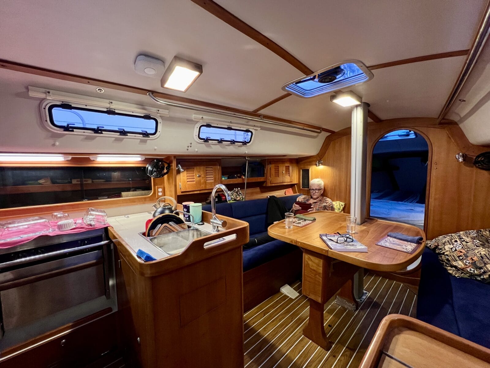 This was particularly good because she owns the same boat, but even without that added advantage it’s well worth persuading a skilled racer to come sailing on your cruising boat. You will learn a lot.
